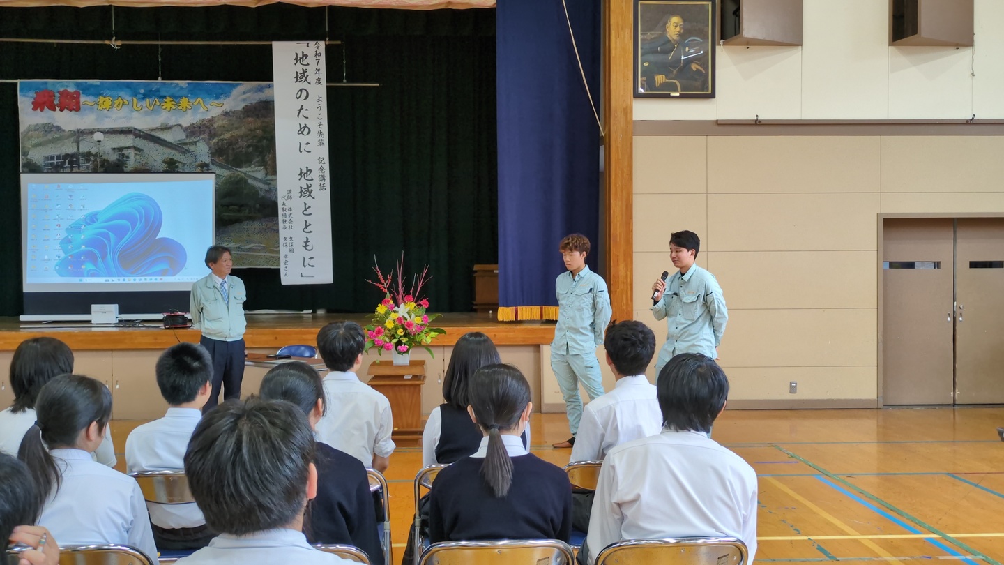地元の本耶馬渓中学校にて全校生徒さんを対象に土木や会社の紹介などさせていただきました。皆さん熱心に聞いてくださり、ありがとうございます。