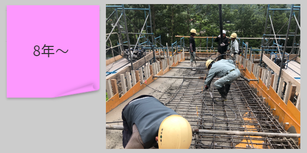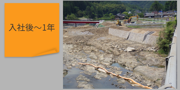 主任技術者のもとで基礎的な管理方法を学ぶ。代理人として、現場に常駐し、発注者とのやり取りをしたり、現場の管理を行う。工事全体に関わることで、工事がどのように行われているか流れを理解する。